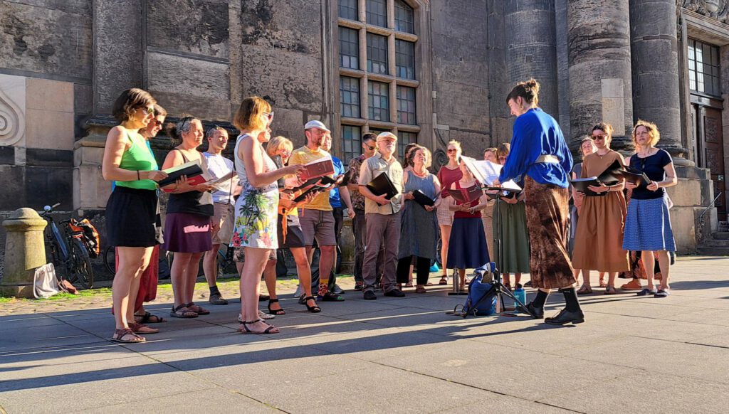 Melde dich bei Interesse gern bei unserer Chorleitung Leona für eine erste Probenteilnahme an (chorleitung@singt-pauli.de).